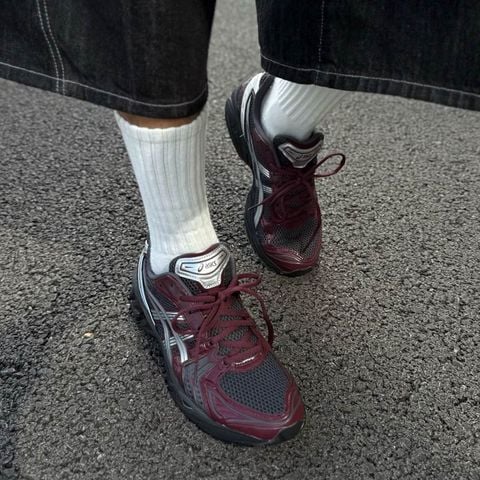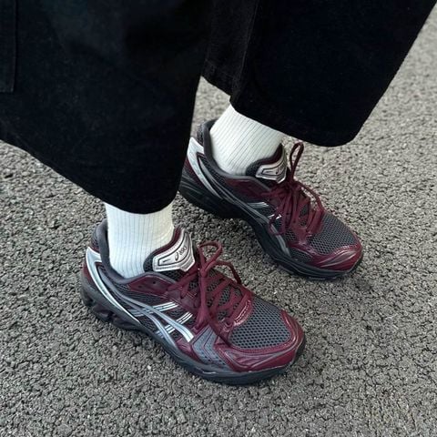 Asics Gel Kayano 14 "Dark Burgundy" - 1203A537-022 mang vẻ đẹp cổ điển đặc trưng của dòng Gel Kayano, nhưng được tái hiện trong tông màu burgundy trầm ấm, kết hợp ánh bạc metallic tinh tế. Thiết kế gợi nhớ tinh thần runner những năm 2000, vừa có nét retro, vừa hiện đại nhờ cấu trúc kỹ thuật và vật liệu cao cấp.
