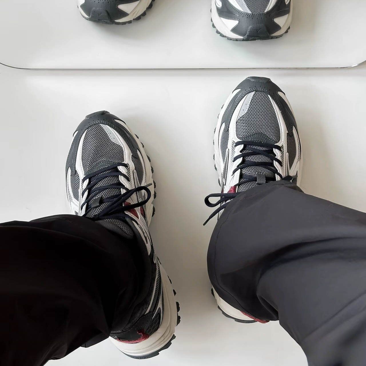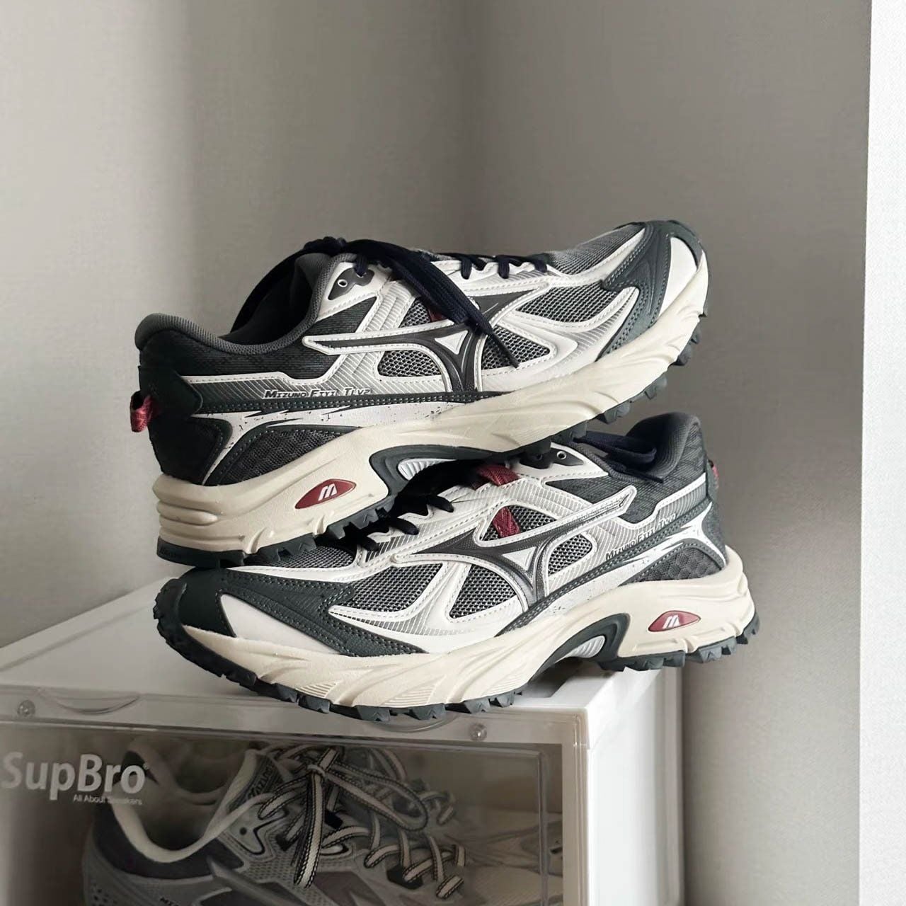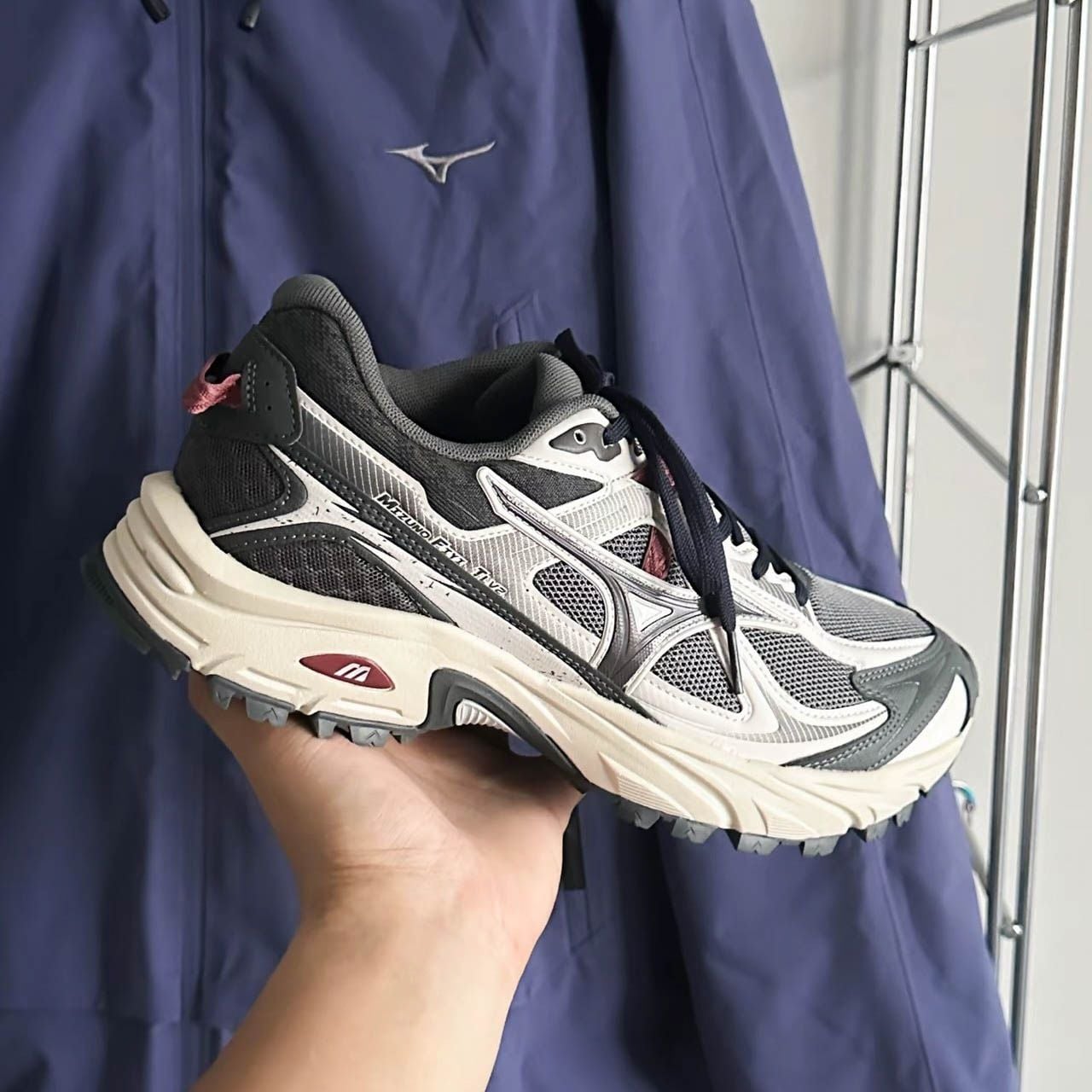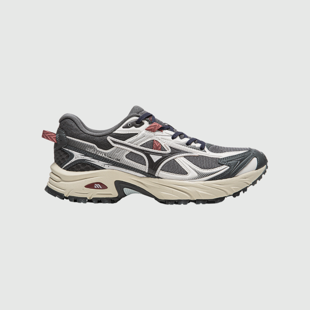 Mizuno FIYI TL V2 "Grey" mang tinh thần của dòng giày địa hình hiện đại, nơi thiết kế và hiệu năng gặp nhau trong một tổng thể tinh tế. Tông màu xám chủ đạo phối cùng các mảng trắng và đen giúp đôi giày giữ được vẻ trung tính, dễ phối đồ, đồng thời tạo cảm giác vững chắc và hiện đại. Một vài chi tiết màu đỏ nhỏ ở phần đế và gót giày đóng vai trò như điểm nhấn tinh tế, vừa đủ để tạo cá tính mà không phá vỡ tổng thể tối giản. Upper sử dụng chất liệu lưới mesh kỹ thuật kết hợp synthetic overlays, mang lại độ bền, thông thoáng và cảm giác ôm chân ổn định khi di chuyển.