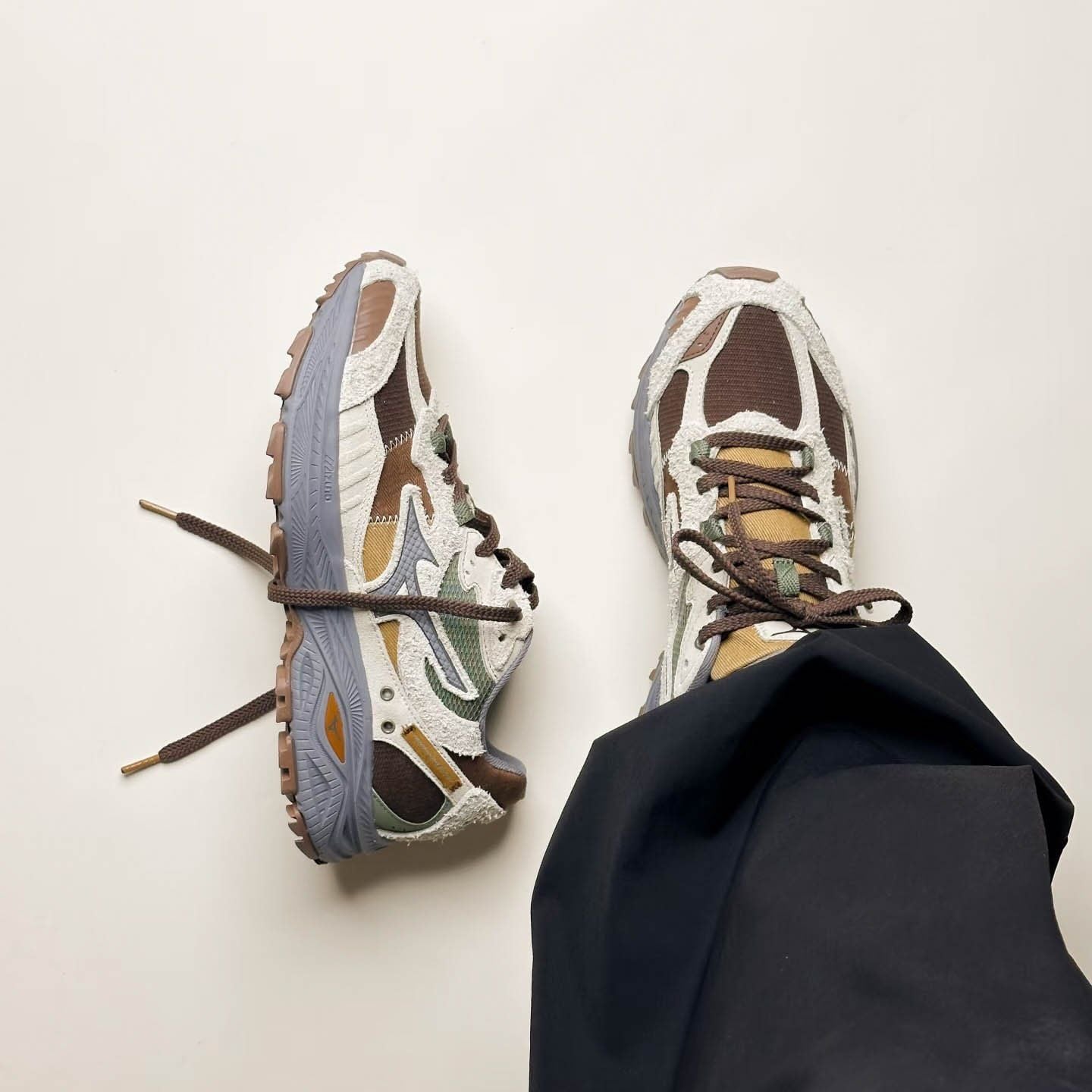 Mizuno Racer ADV "Suede Brown" - D1GH241213 là sự kết hợp hài hòa giữa chất liệu cao cấp và công năng địa hình. Toàn bộ upper được bọc da lộn dày dặn, tạo nên vẻ ngoài ấm áp, vintage nhưng vẫn phảng phất hơi thở hiện đại. Gam màu nâu đất giúp đôi giày mang nét tự nhiên, dễ phối cùng các outfit tông trung tính hoặc phong cách outdoor hiện nay.