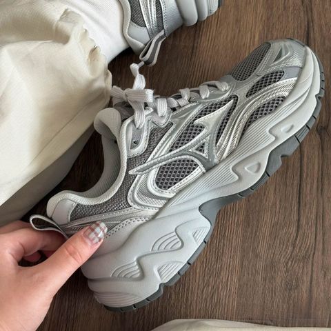 • Upper làm từ chất liệu mesh thoáng khí kết hợp da tổng hợp phủ bạc sang trọng.