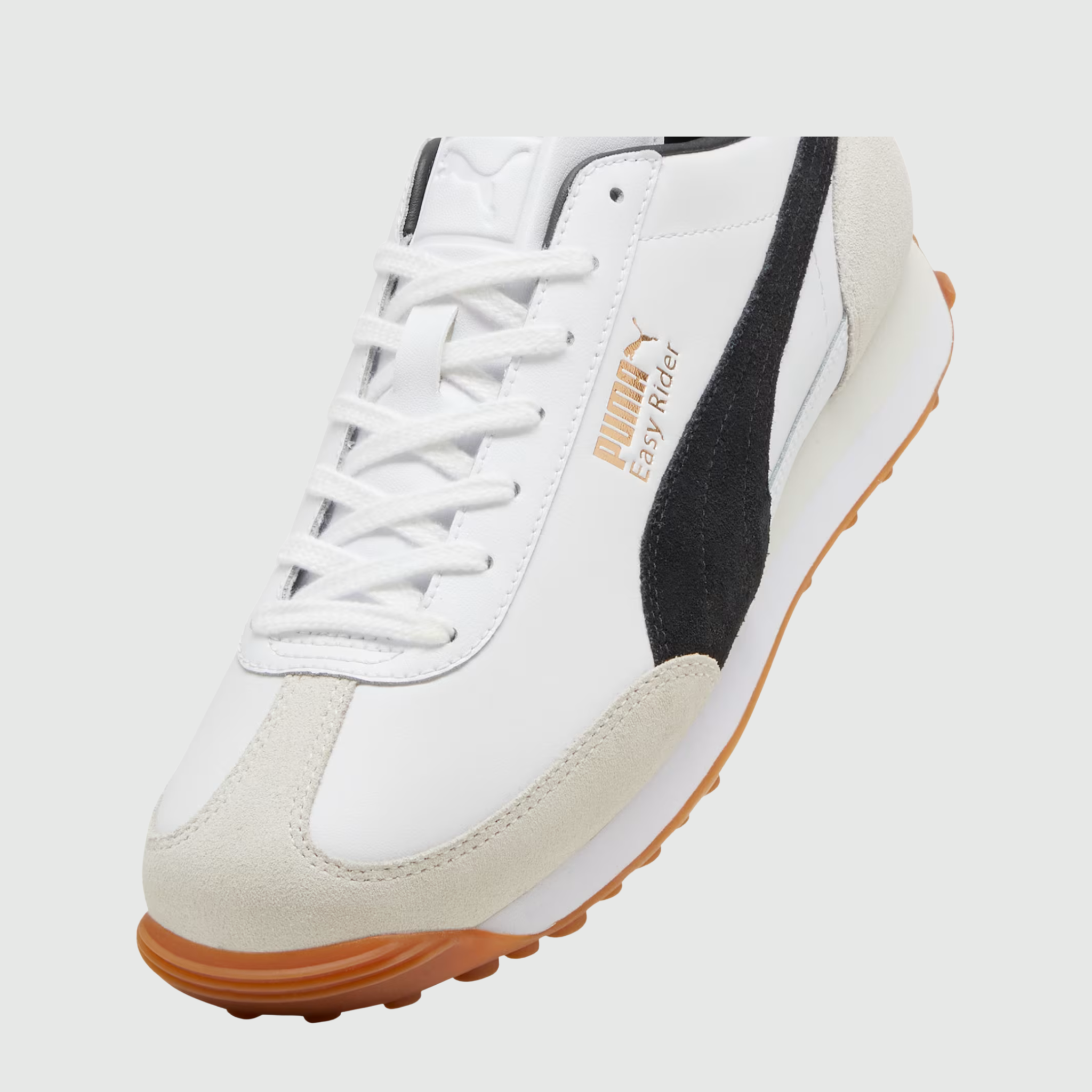 Puma Easy Rider Mix "White Black Gum" là phiên bản phối màu tinh tế của dòng Easy Rider kết hợp giữa trắng White tinh khiết, đen Black cá tính và gum sole cổ điển. Thiết kế pha trộn chất liệu da & suede cùng các chi tiết đa chất liệu tạo nên vẻ ngoài thời trang, đa dụng và phù hợp với nhiều phong cách streetwear hiện đại. Với silhouette low profile gọn gàng, đôi giày mang đến cảm giác vừa retro vừa rất đương đại.