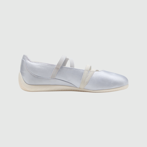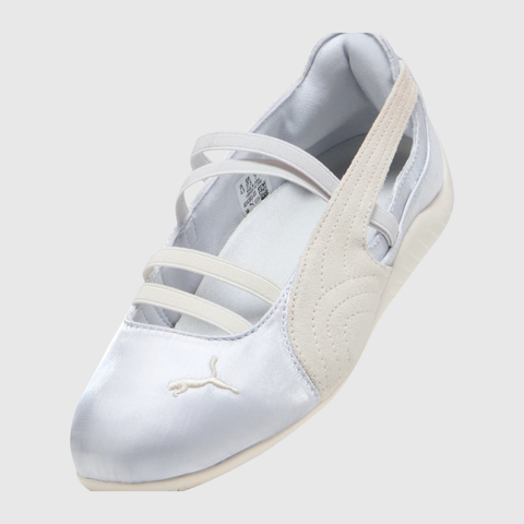 Puma Speedcat Ballet "Silver Mist & Warm White" là phiên bản tinh tế kết hợp giữa hai tông màu nhẹ nhàng: Silver Mist ánh bạc mềm mại và Warm White thanh khiết. Thiết kế Speedcat Ballet pha trộn tinh thần motorsport huyền thoại với form ballet flat nữ tính tạo nên đôi giày vừa thời trang vừa linh hoạt. Sắc màu bạc nhạt hài hòa với trắng ấm giúp đôi giày dễ phối cùng outfit pastel, minimal hoặc streetwear phong cách nhẹ nhàng.