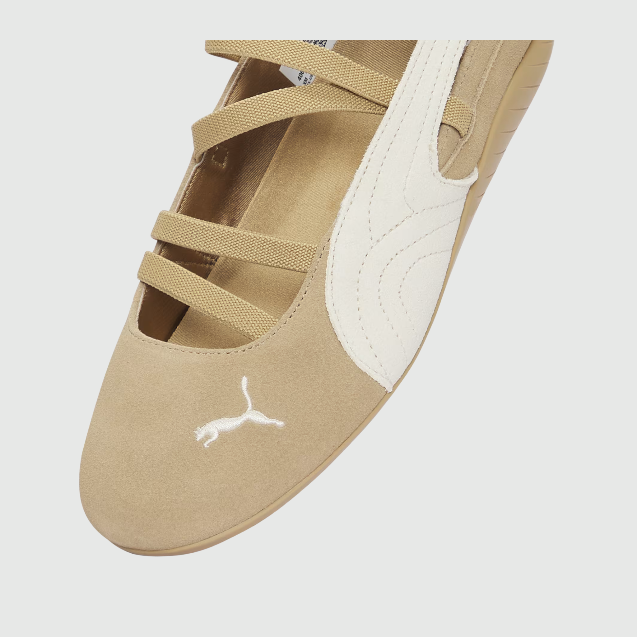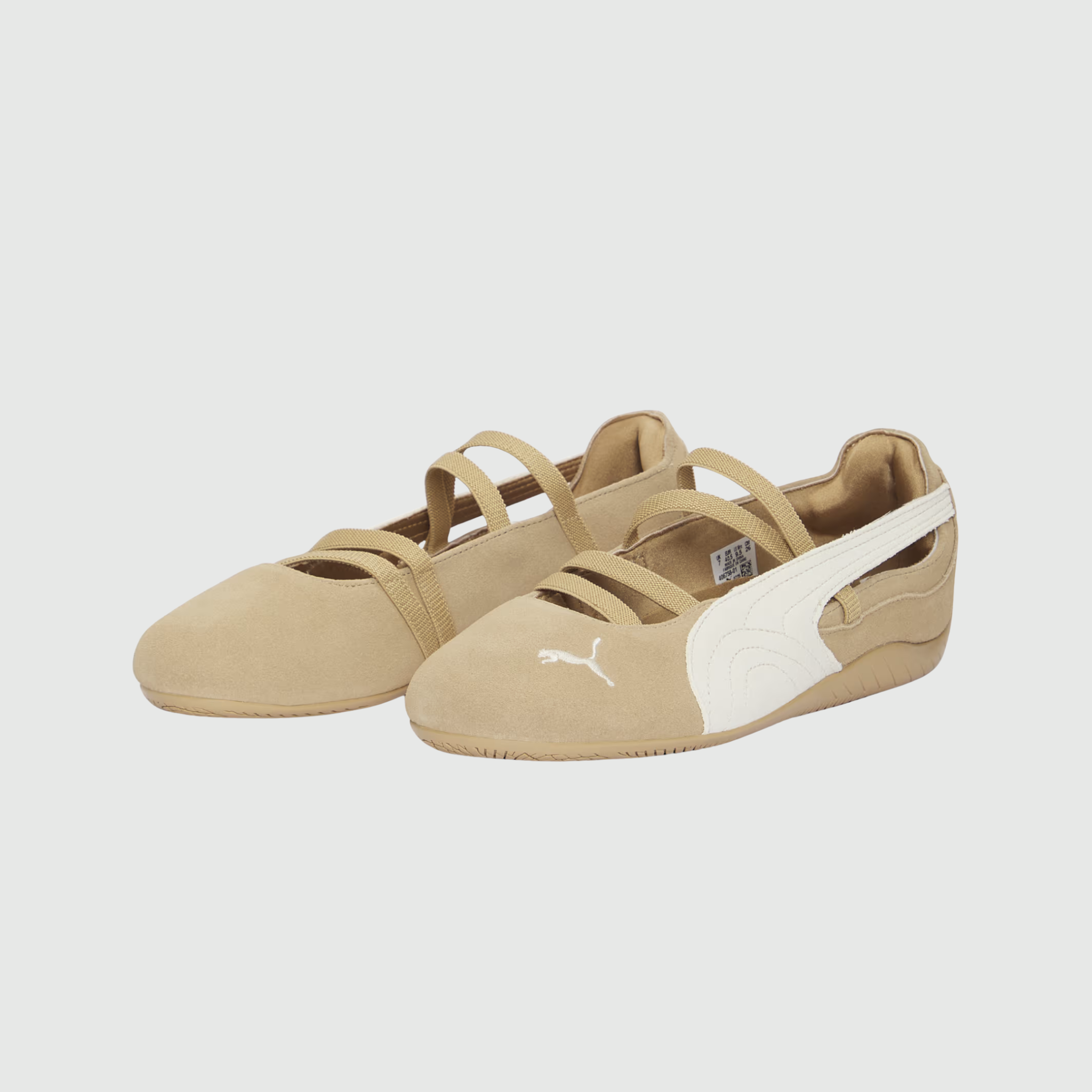 Puma Speedcat Ballet "Café" là sự giao thoa tinh tế giữa tinh thần motorsport huyền thoại của dòng Speedcat và vẻ đẹp thanh lịch của ballet flat. Phối màu nâu Café ấm áp mang hơi hướng vintage, tối giản nhưng cực kỳ thời trang. Thiết kế mũi thon, đế mỏng và form gọn giúp đôi giày tôn dáng bàn chân, phù hợp cho phong cách casual chic đến minimalist hiện đại.